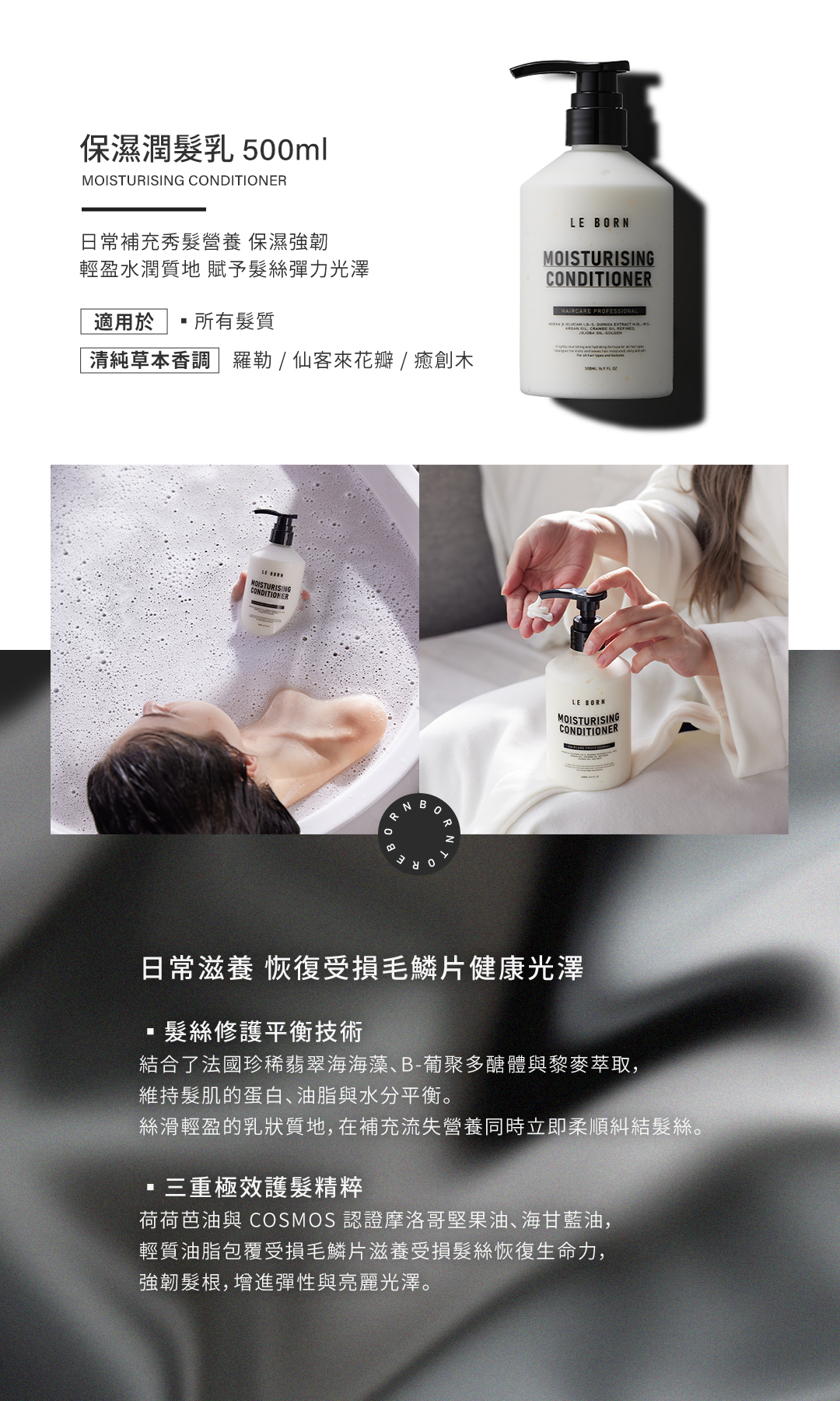 保濕潤髮乳:補水養護,修復乾燥髮絲,提升柔順感。